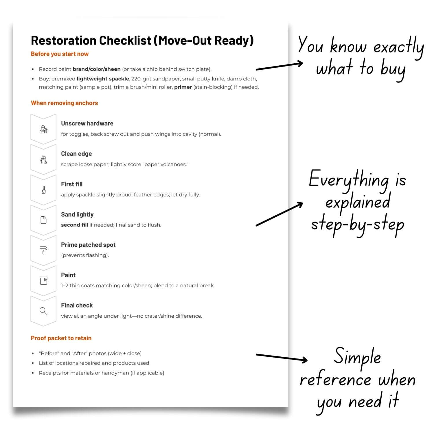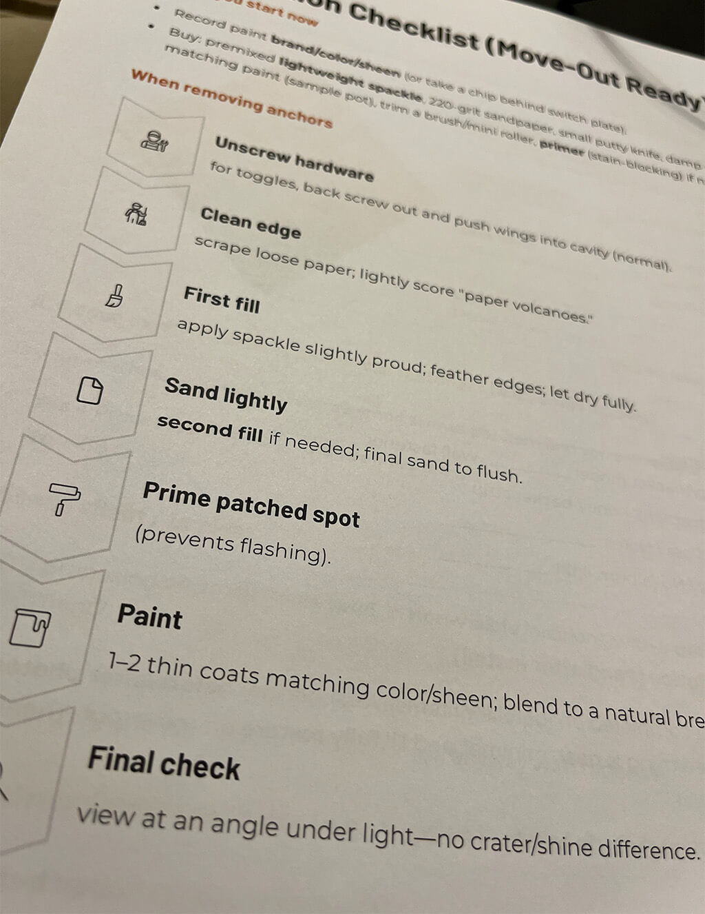 Restoration checklist for move-out