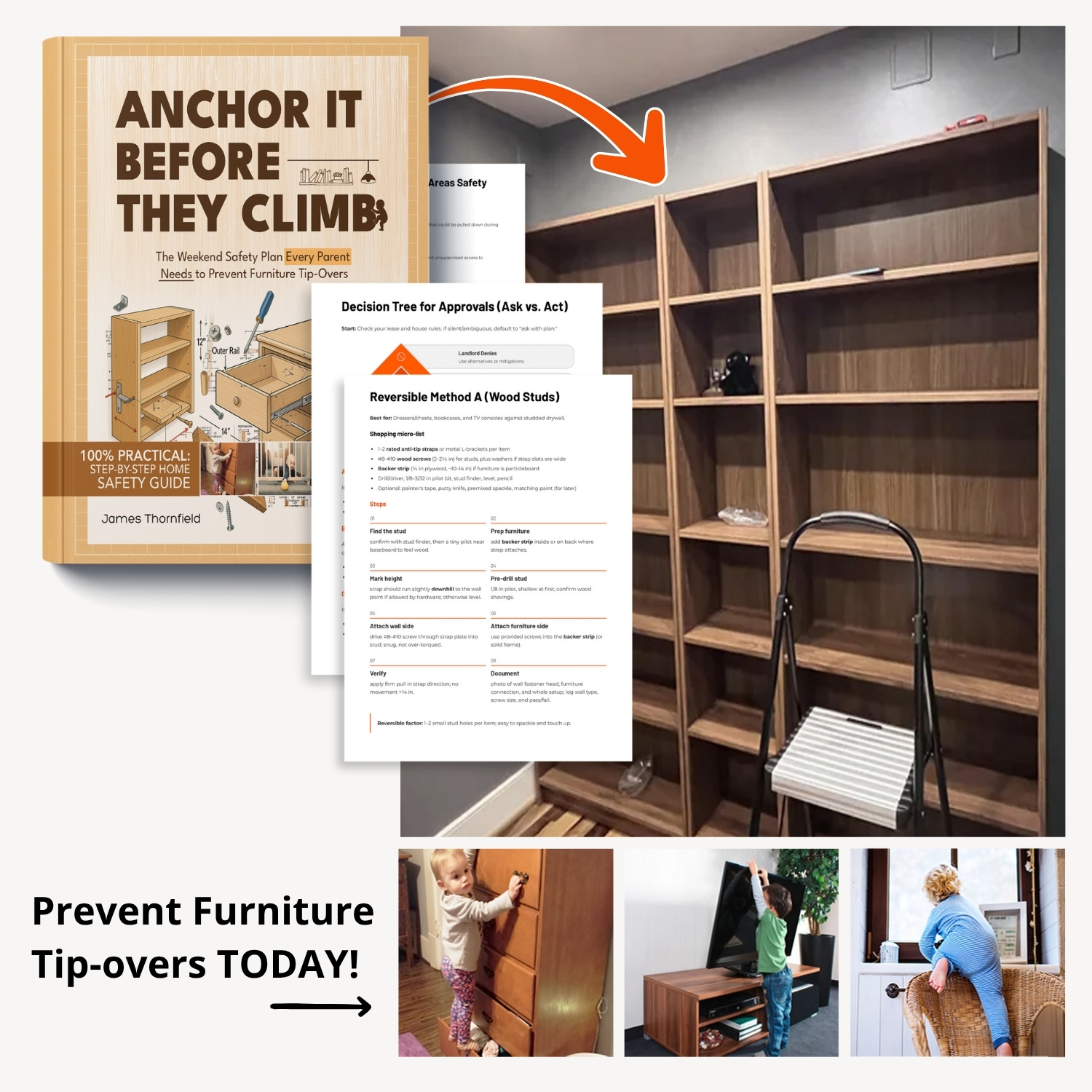 This Anchor It Before They Climb Guide gives you everything you need to anchor every high-risk item — in just one weekend — even if you're terrified of tools or stuck in a rental.